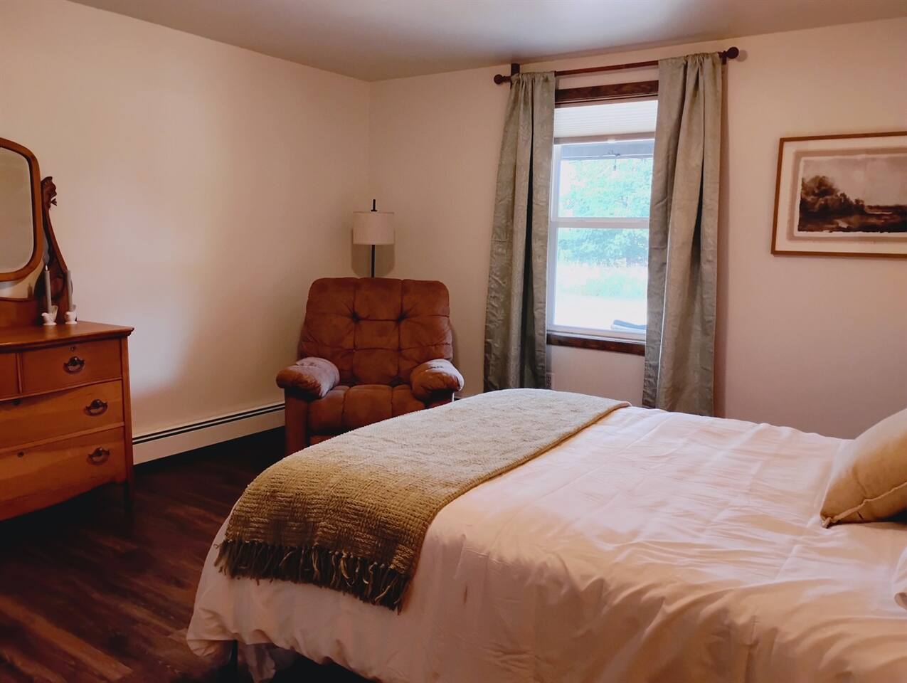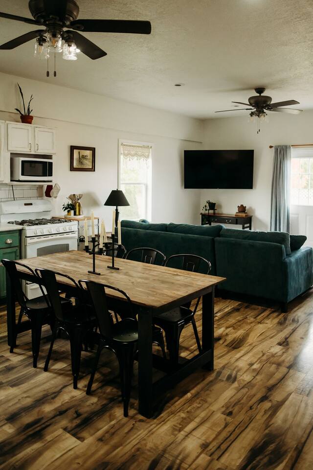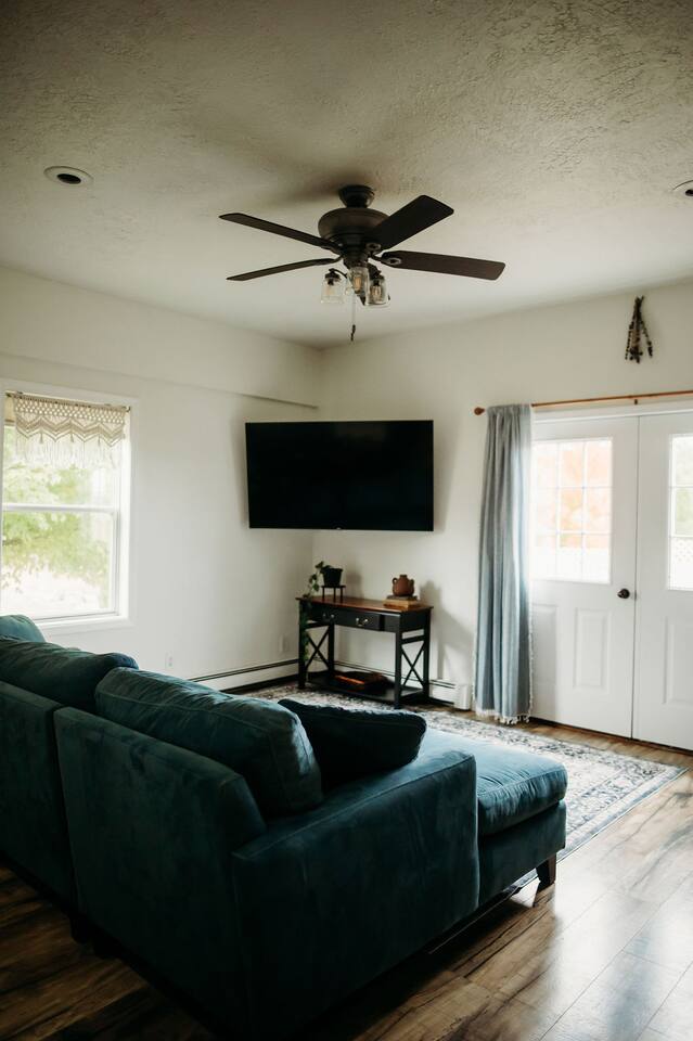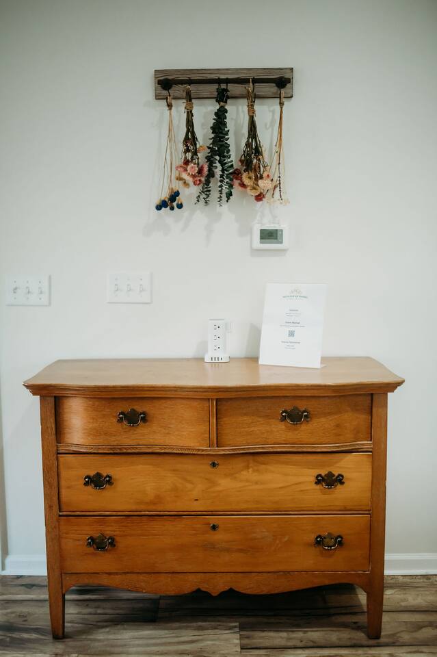 Step inside and make yourself at home in this 3-bedroom, 1-bath cottage designed for comfort and relaxation. Living Room: A spacious, light-filled gathering area with a plush sofa, cozy seating, and a 65” Roku Smart TV — perfect for movie nights or streaming your favorites. Starlink high-speed internet (wired & wireless) makes it easy to stay connected for both work and play. Kitchen & Dining: A fully equipped kitchen stocked with the essentials you need for home-cooked meals, plus a dining area for family dinners, game nights, or morning coffee with a view. Bedrooms: Three thoughtfully prepared bedrooms with fresh linens and cozy touches to make you feel at home. (Bedroom 1: Queen bed, Bedroom 2: Queen bed, Bedroom 3: Queen bed + twin bunk bed) Bathroom: One full bathroom, fresh towels provided, stocked with the toiletries that you'll need. ✨ Outdoor Spaces A seasonal flower field right behind the cottage, exclusively for guest enjoyment. Walking trails through our forest, perfect for a quiet stroll or morning hike. A firepit with seating — the best place to watch the sunset, roast marshmallows, and stargaze at night. Gorgeous countryside views, offering the kind of peace and quiet only a farm setting can provide.